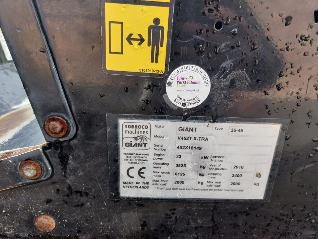 Giant V452T X-tra, bouwjaar 2018, 1399 uren, hydraulische snelwissel, 3e functie, met puinriek en palletvorken, van 1 ste eigenaar, dealer onderhouden.