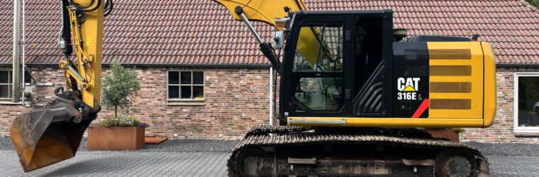 Caterpillar 316 EL, bouwjaar 2015, 5400 draaiuren!!, rijwerk 70% oké, 2x proportionele bediening, automatische smering, hydraulische snelwissel, kraanboek, dom onder giek, complete overdruk installatie.